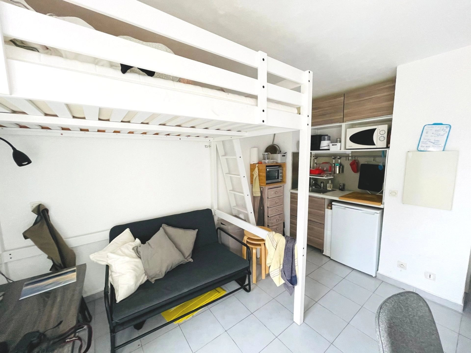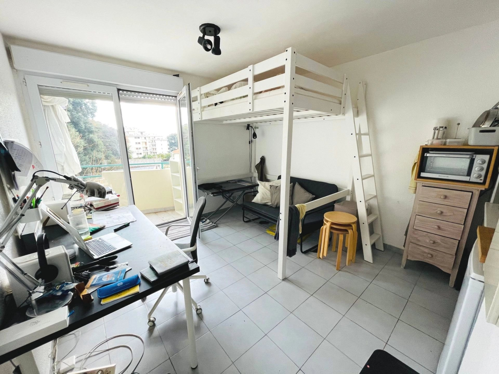 Vallon de Barla, au 2ème étage avec ascenseur, studio de 20.08m² composé d'une pièce à vivre avec coin cuisine équipé donnant sur un balcon exposé Sud avec vue dégagée et une salle de douche avec toilette. Possibilité de louer à 500€/mois.
