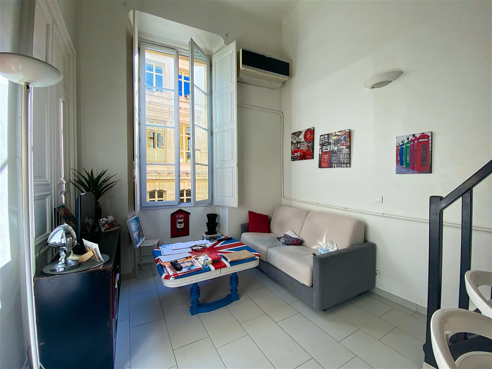 A proximité immédiate de la Place du Palais !! Studio de 24m² avec chambre en mezzanine. Situé au deuxième étage d'un ancien palais niçois, cet appartement se compose d'une entrée, d'une salle de douche avec wc, d'un lumineux séjour en exposition Sud avec cuisine ouverte et d'une chambre avec placard aménagée sur la mezzanine. Belles hauteurs sous plafonds, Double vitrage et climatisation. Bien soumis à la copropriété. Nbre de lots principaux : 79 Charges courantes : 912€/an. Taxe foncière 318€/an. Les honoraires sont à la charge du vendeur.