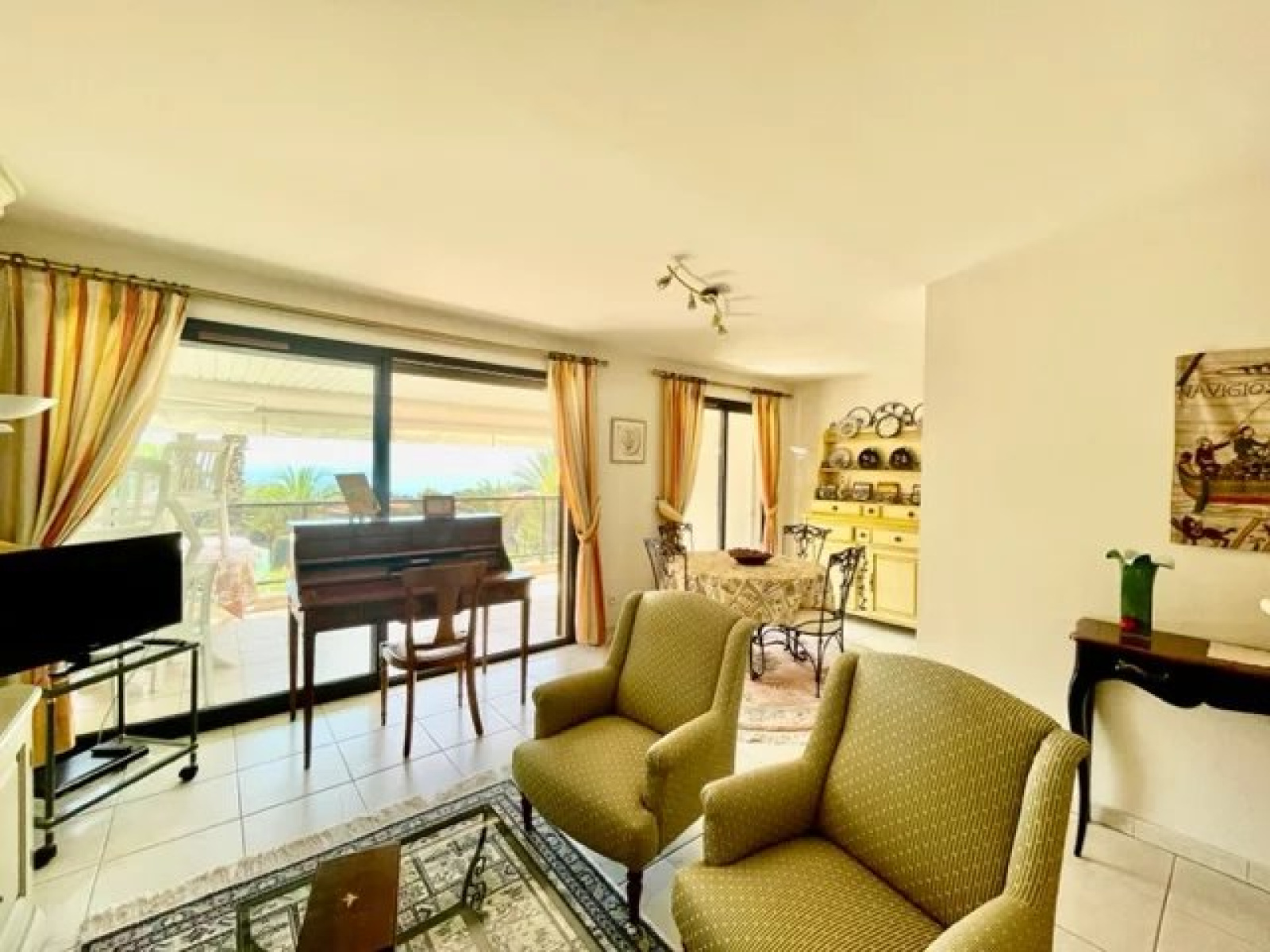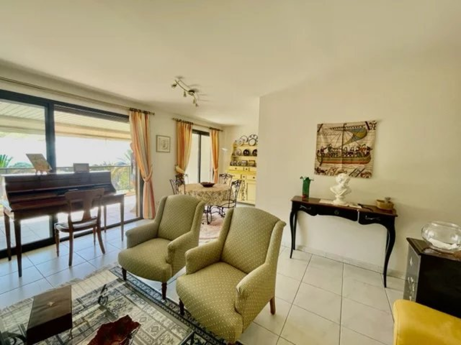 L'appartement, traversant, en exposition sud, jouit d'une exceptionnelle vue mer.