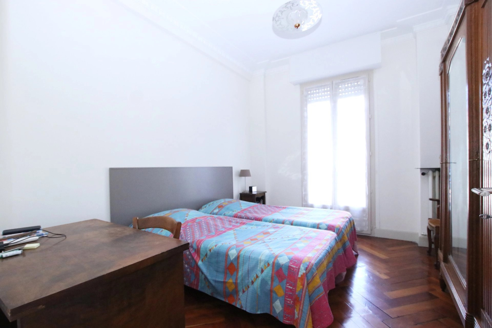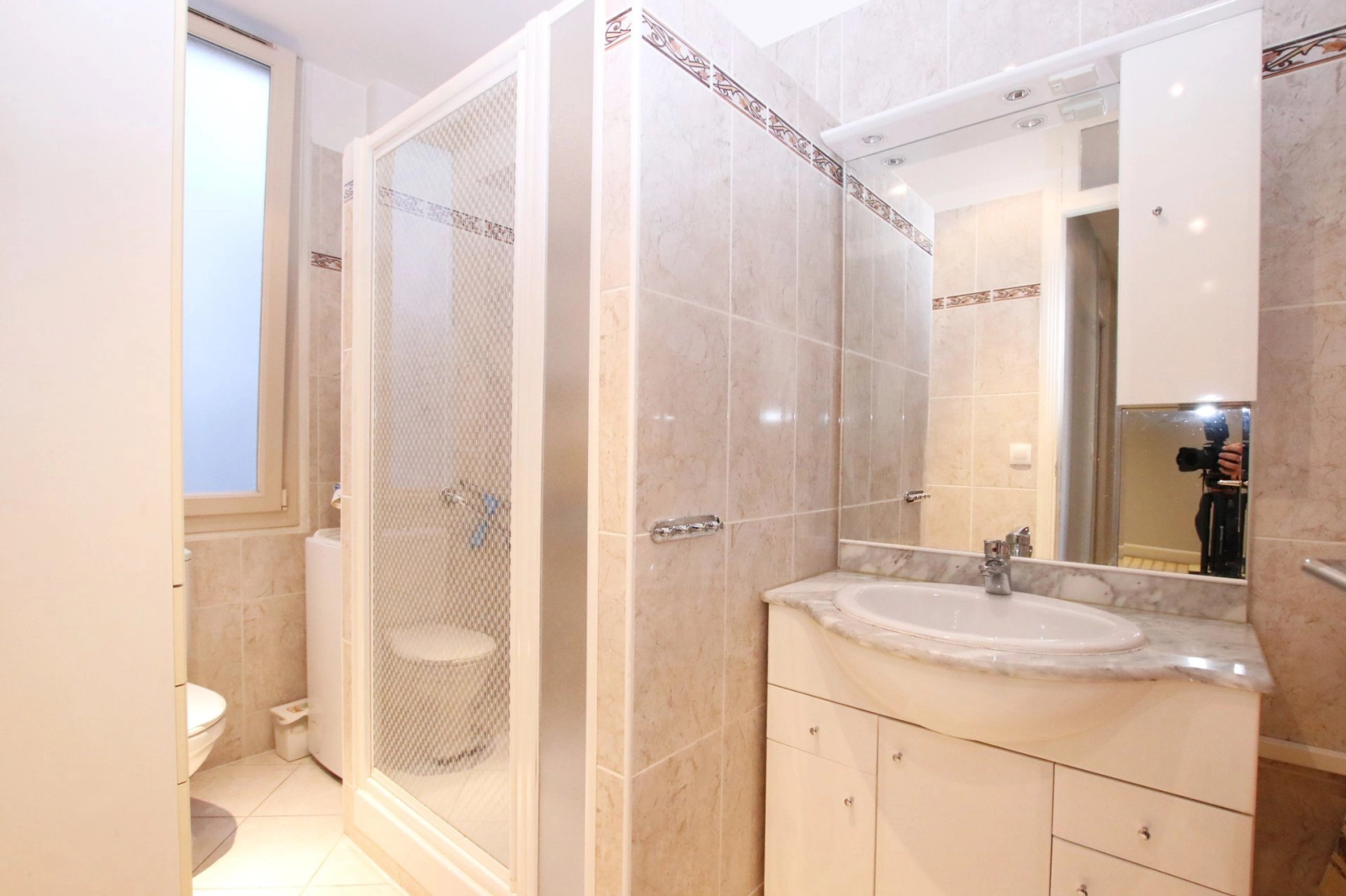 Au premier étage d'un immeuble art déco, vaste appartement 2 pièces de 51.83 m² en parfait état, entrée avec porte blindée, cuisine séparée, séjour de 18 m², chambre et salle de douche avec wc. Cave. Double vitrage, parquets massifs, climatisation, volets roulants électriques...