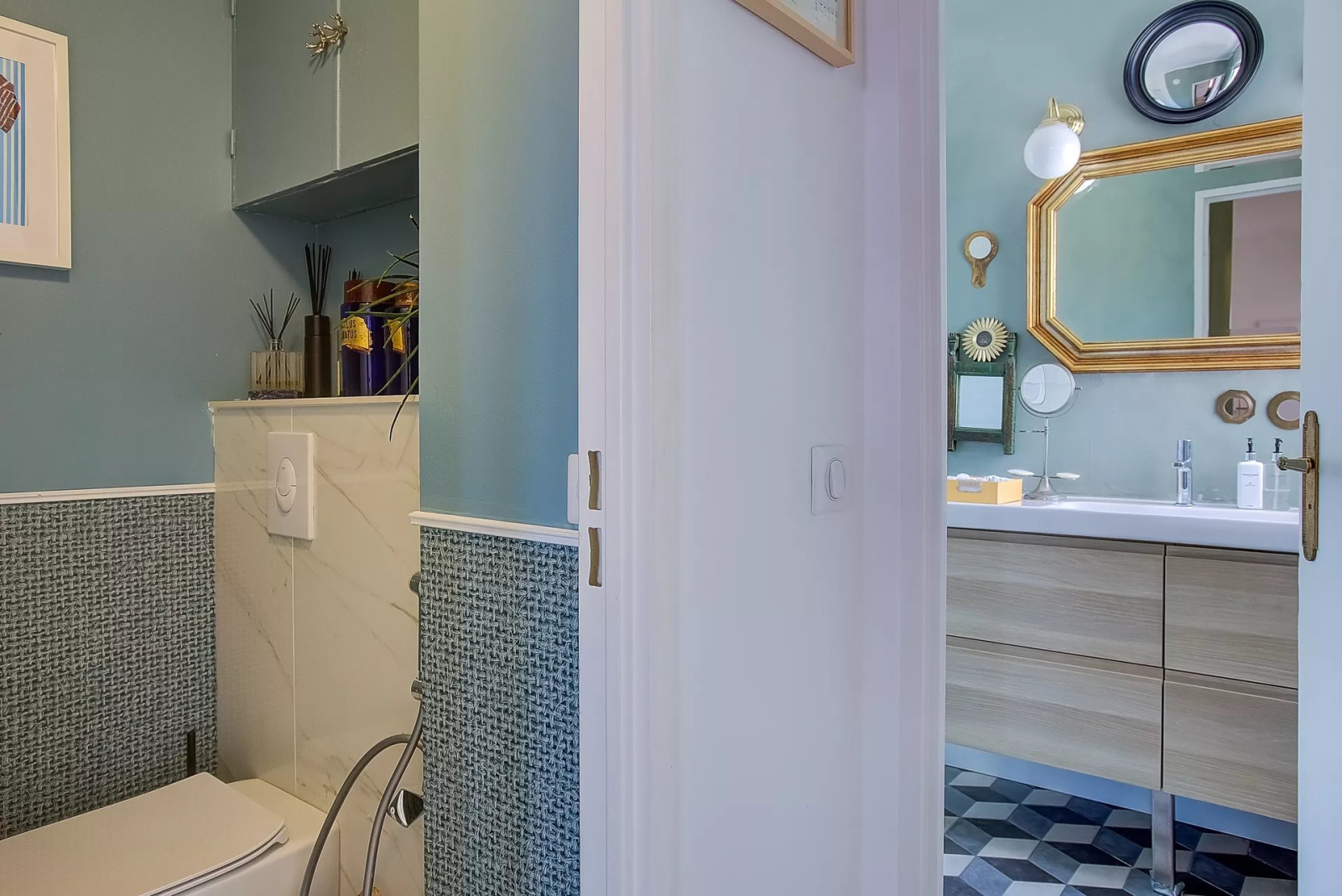 Cuisine et toilettes indépendants. Le bien est vendu avec une cave et un garage fermé.