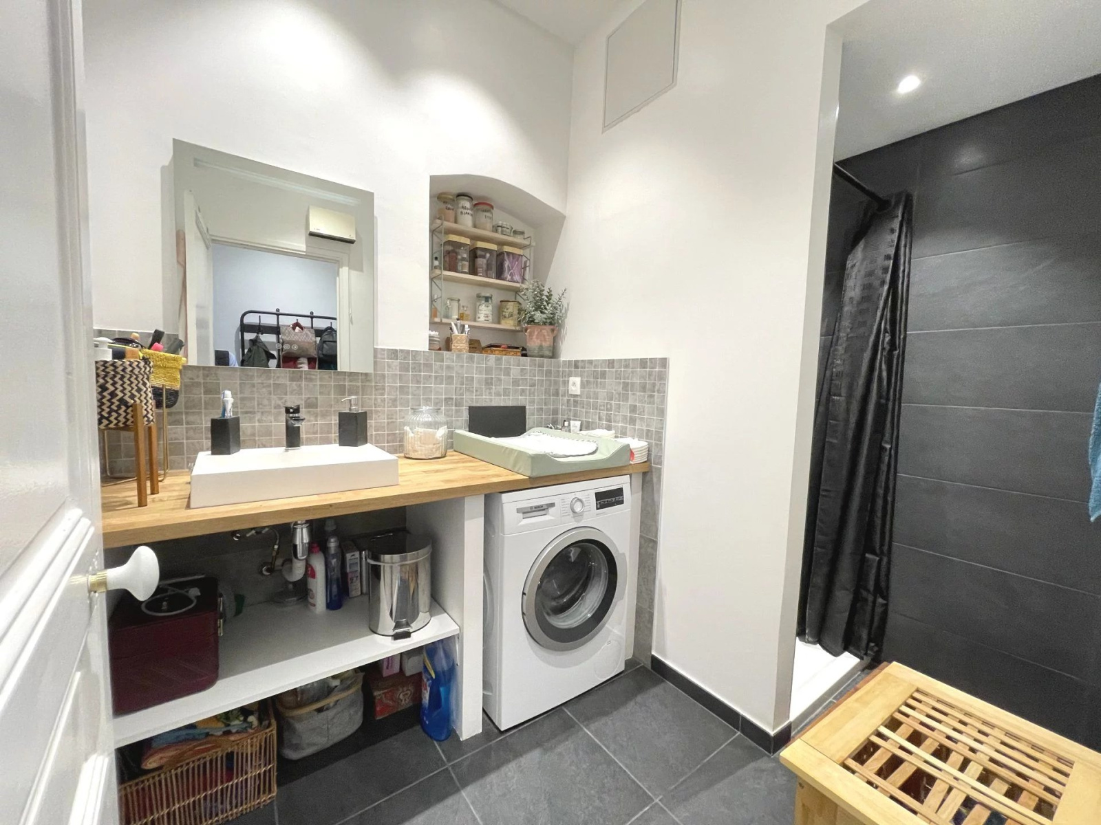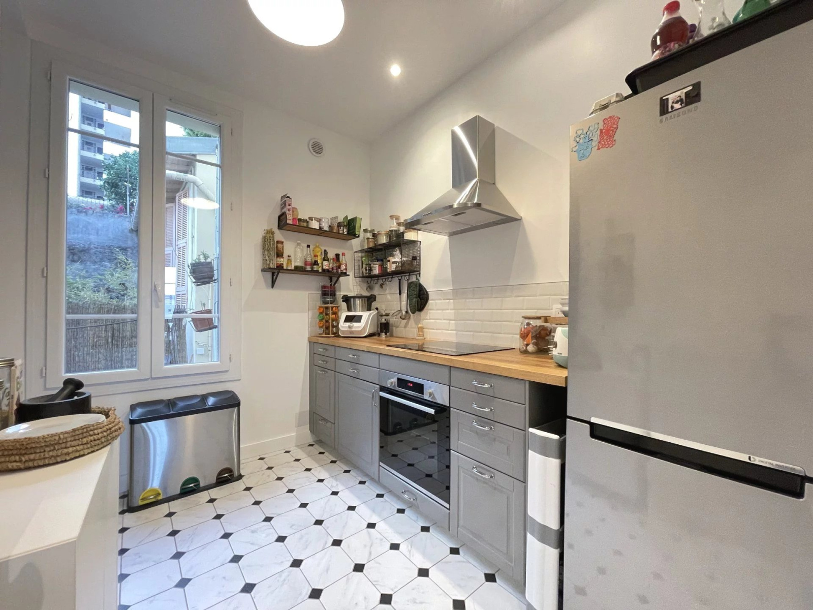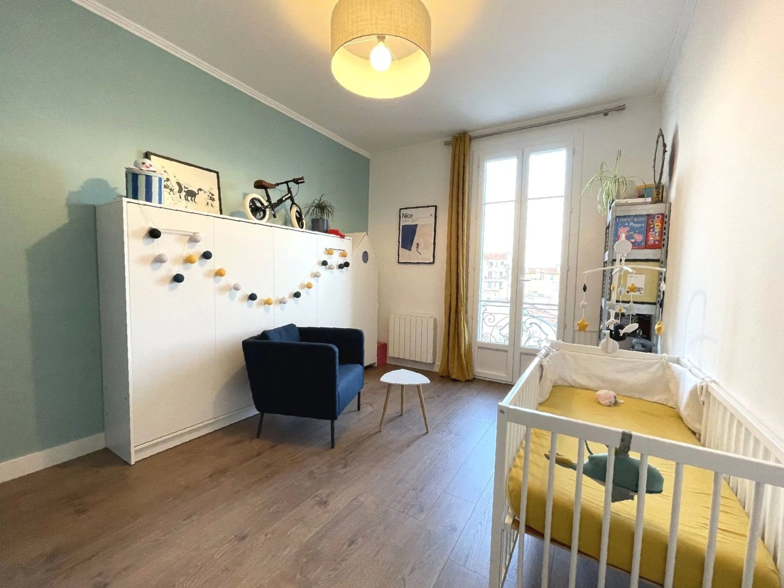Parc Impérial, 3 pièces de 63,17m² situé au 1er étage d'un petit immeuble niçois. Il est composé d'une entrée, d'un WC indépendant, d'une cuisine indépendante meublée et équipée, d'un séjour, de deux chambres et d'une salle de douche. L'appartement a été entièrement rénové. L'immeuble dispose d'une terrasse commune.