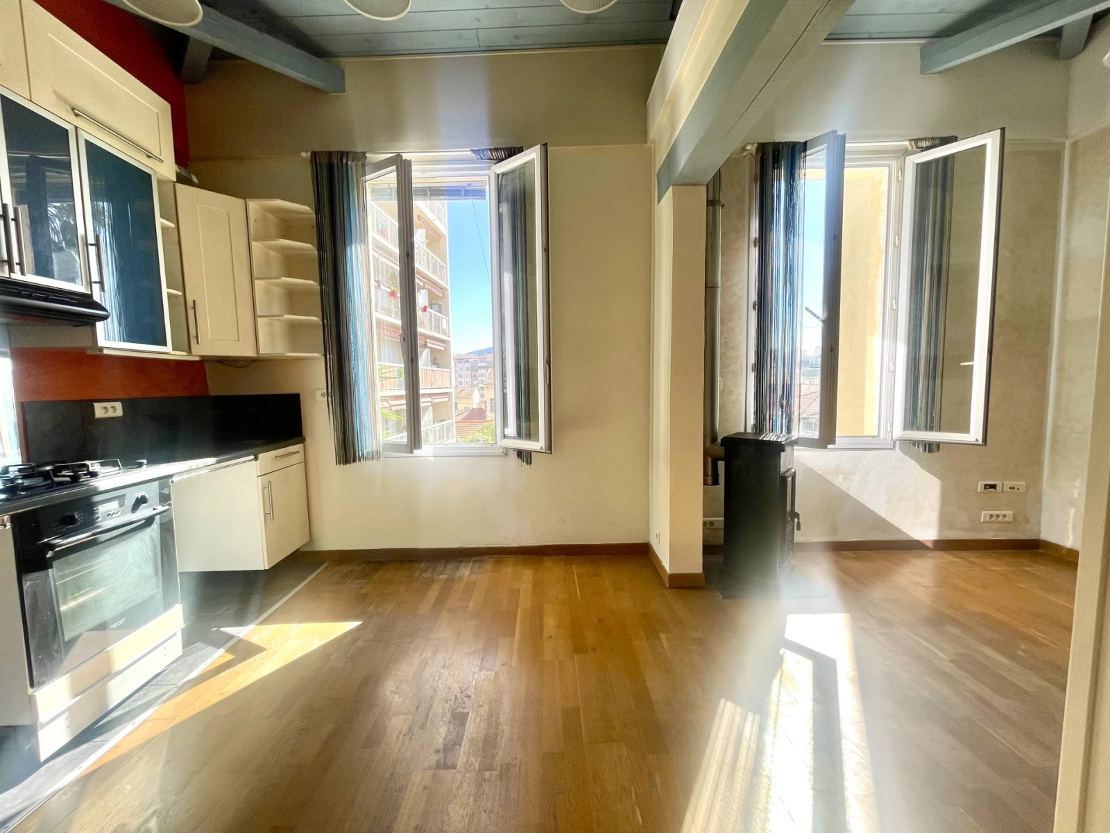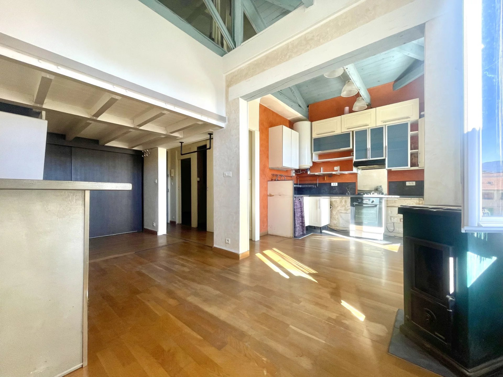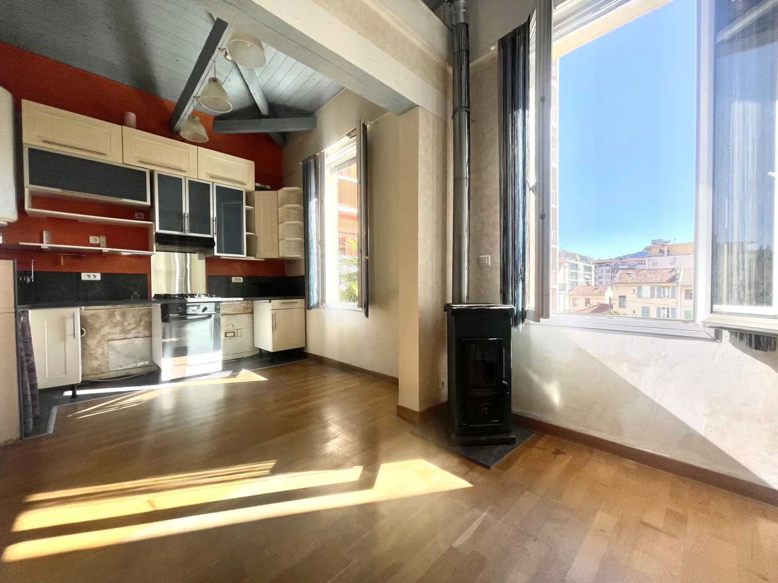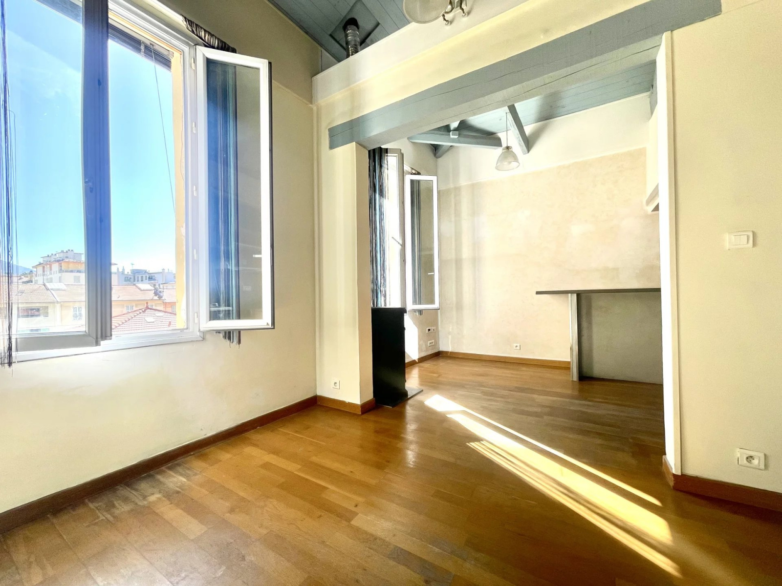 NICE 06100 (SAINT-BARTHELEMY) Lumineux 3 Pièces d'environ 66M² (36,73m² loi carrez) au calme absolu, au 2ème et dernier étage d'une charmante maison niçoise divisée, exposé Est, vue dégagée, vous serez séduit par le toit cathédrale qu'offre cet appartement, il se compose d'une spacieuse pièce de vie avec cuisine ouverte d'environ 26m², une chambre en mezzanine, un espace bureau avec mezzanine, une salle d'eau avec fenêtre, WC.