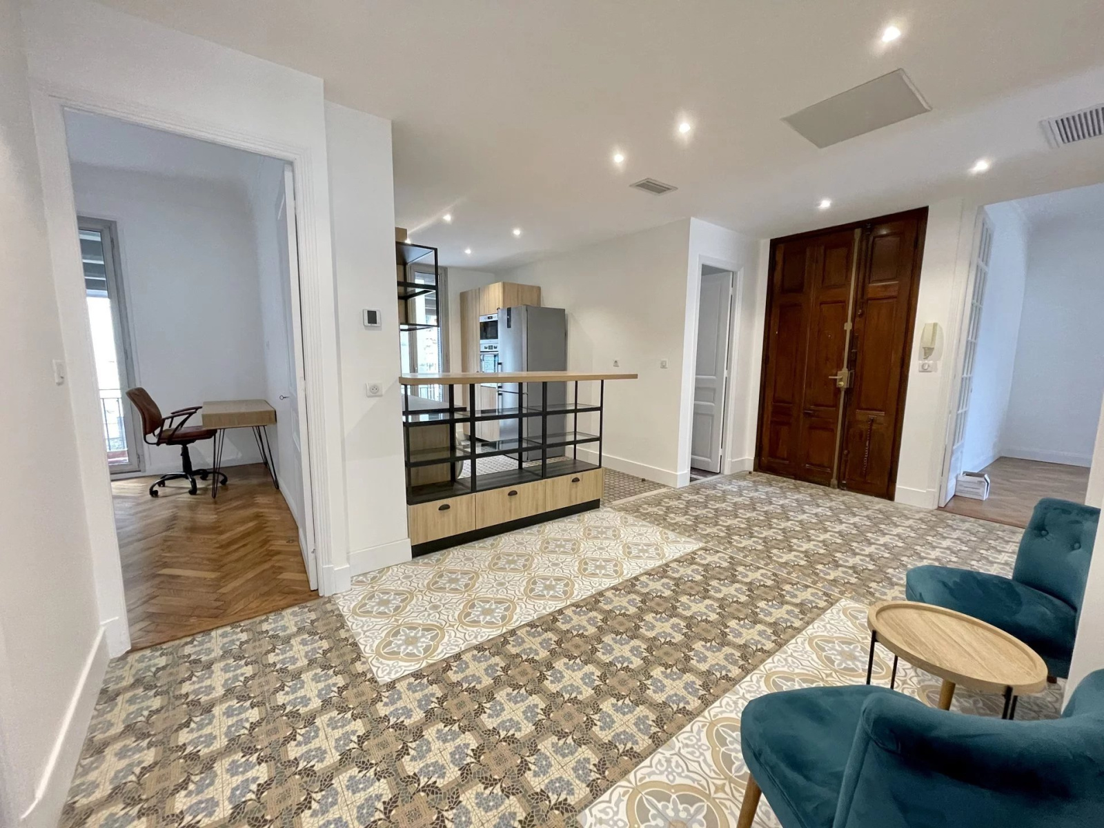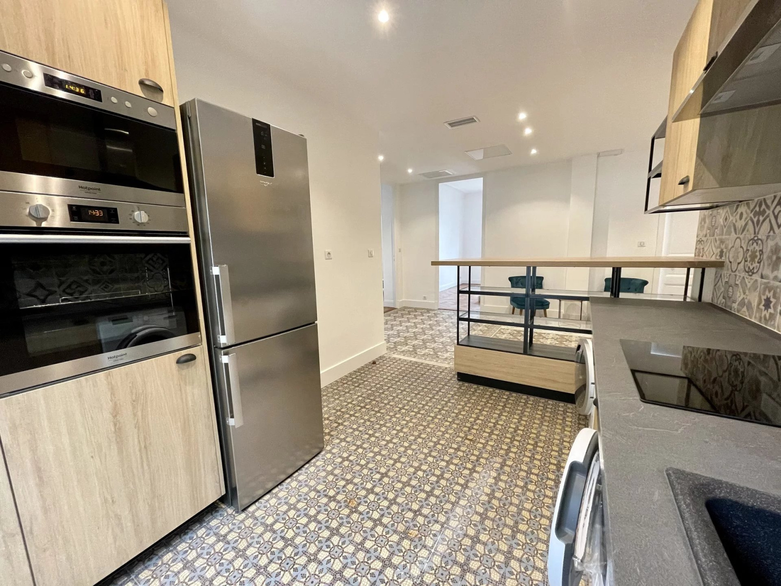 Dans beau bourgeois, 4 pièces de 97.39m² en étage élevé avec ascenseur, traversant Nord/Sud composé d'une belle entrée, d'un séjour avec balcon exposé sud, d'une cuisine aménagée et équipée, d'une chambre parentale avec salle de douche, de deux chambres, d'une salle de douche et d'un toilette indépendant. Belle hauteur sous plafond, parquet au sol et carreaux de ciment, climatisation gainable, belles prestations.