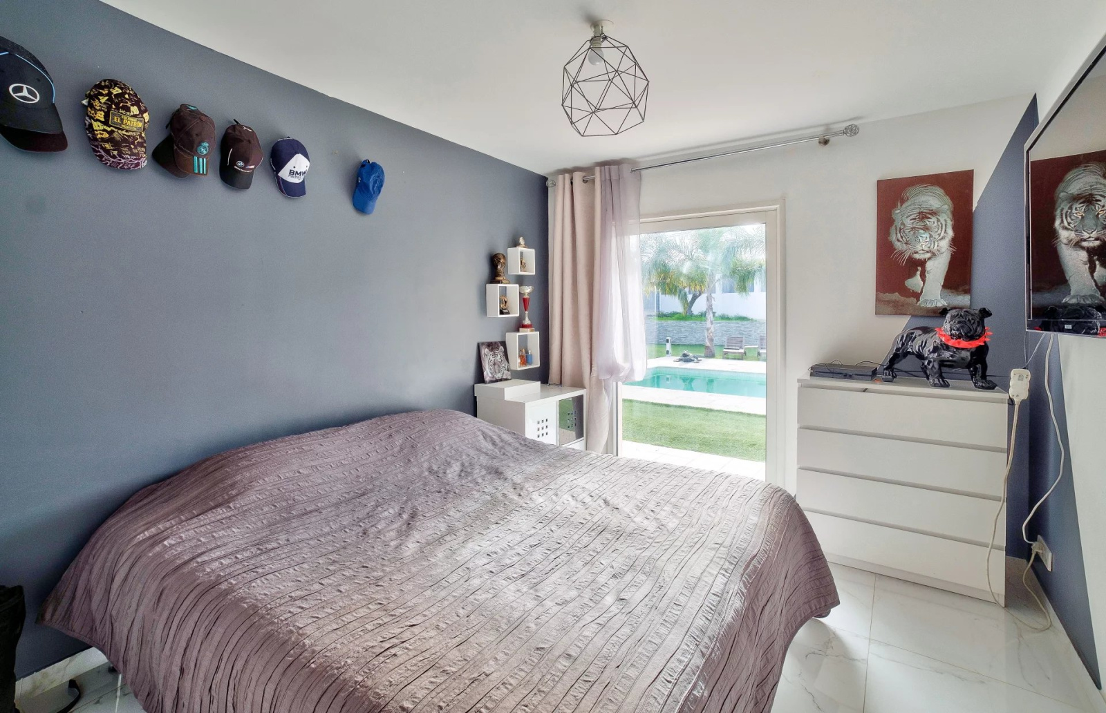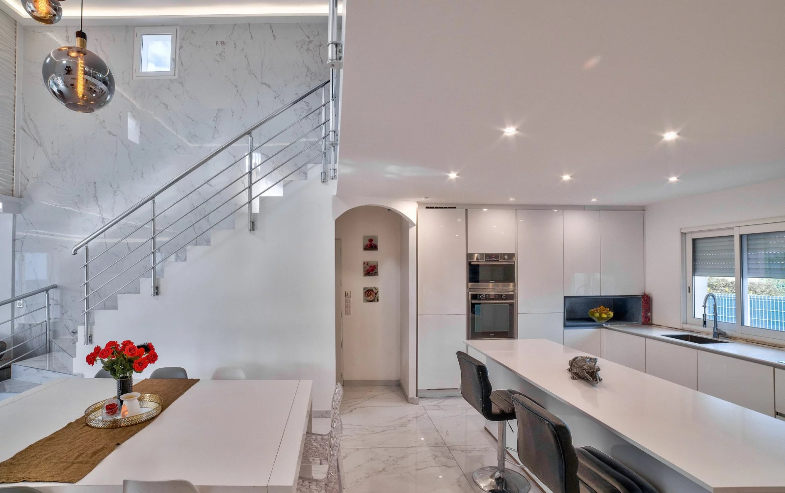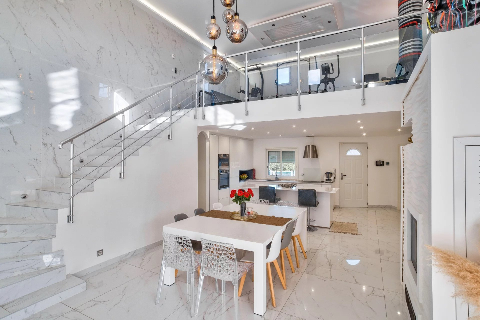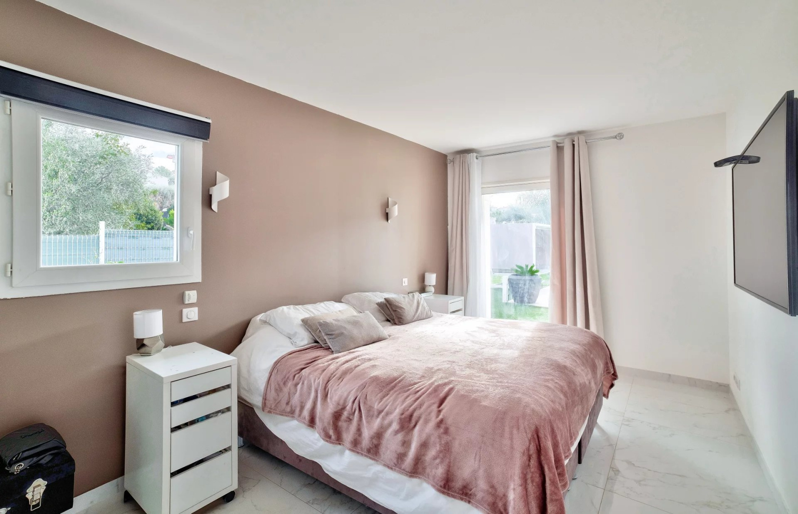 Cette villa est entièrement domotisée, équipée de volets roulants électriques, d'un chauffage au sol, d'ouvertures à galandage, d'une aspiration centralisée, le jardin est facile d'entretien car recouvert d'une pelouse synthétique.