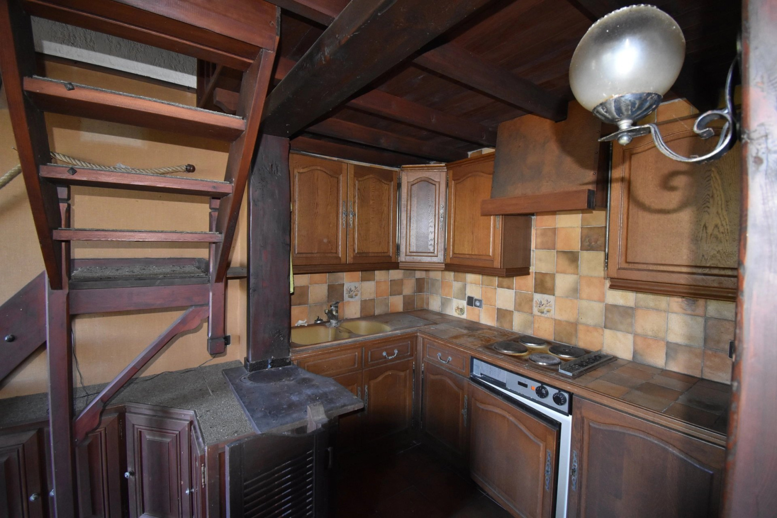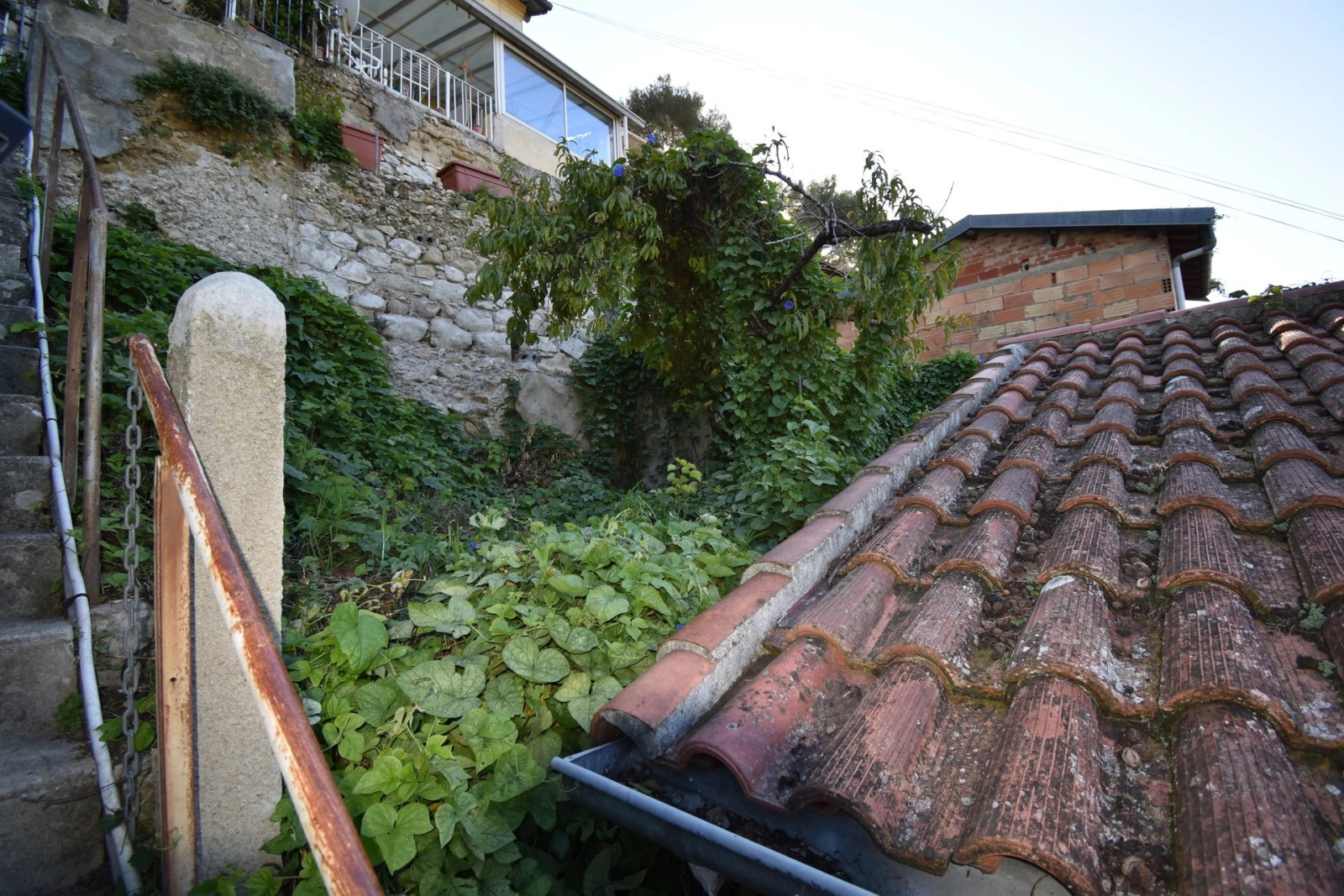 Accessible par un escalier, la maison est à rénover.