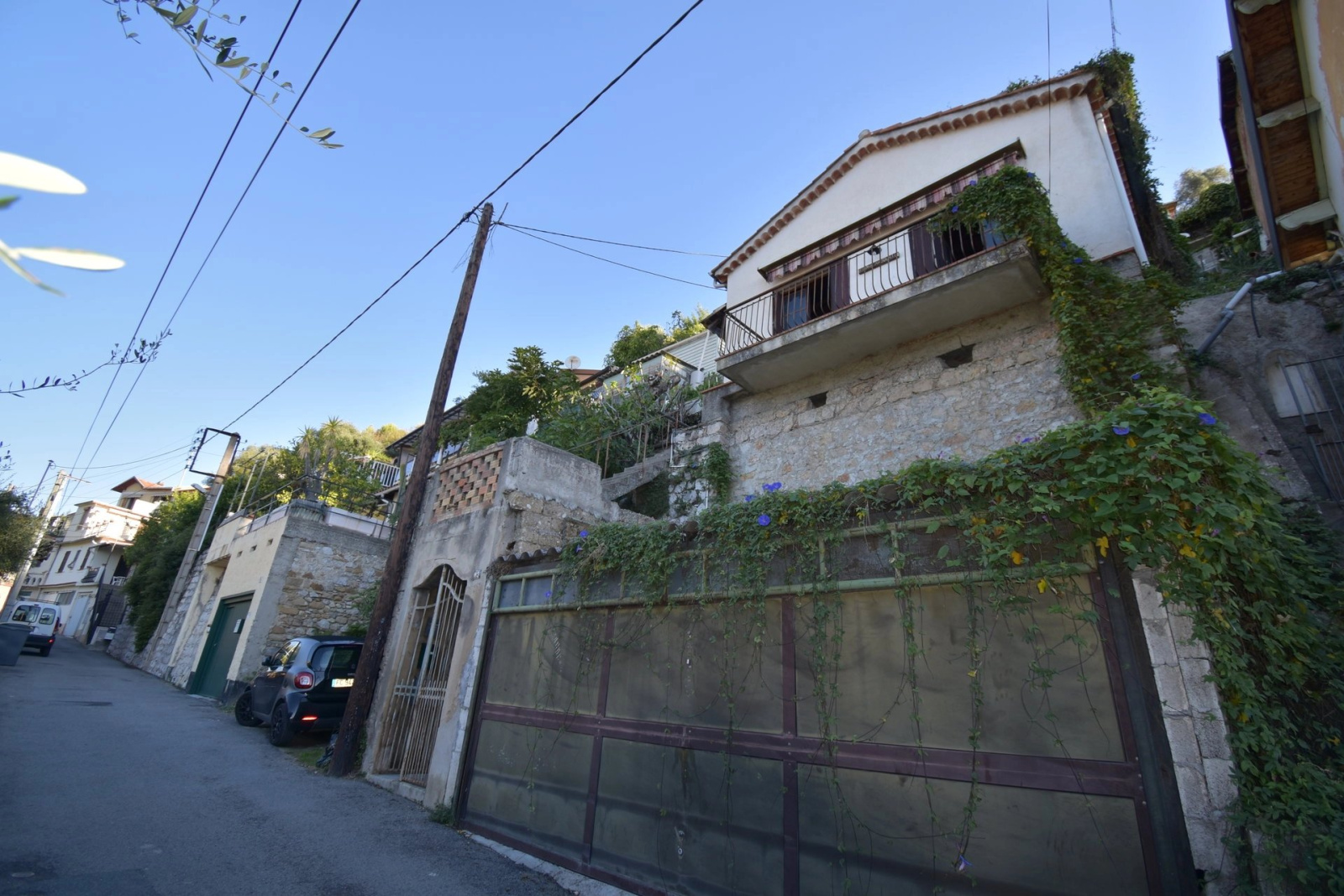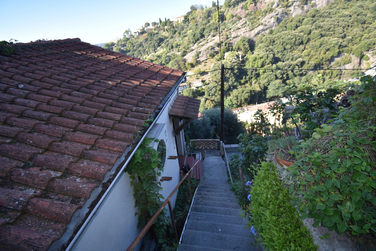 les hauteurs de la colline de Garavan coté ouest, petite maison individuelle d'environ 32 m2 composée d'une pièce principale avec cheminée, cuisine us , donnant sur une terrasse vue mer, une salle de bains, une chambre à coucher en mezzanine.