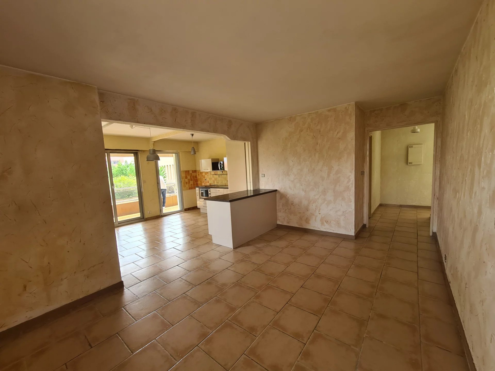 Ce grand deux pièces est composé d'une entrée, d'un séjour avec cuisine américaine équipée donnant sur une belle terrasse de 19m² . Vous trouverez aussi une chambre avec placard, une salle de douche à l'italienne et des toilettes indépendantes , Quelques rafraîchissements sont à prévoir.